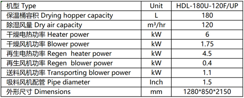 2、High performance and low dew point dehumidification, drying and feeding combination HDL-180U-120F/UP