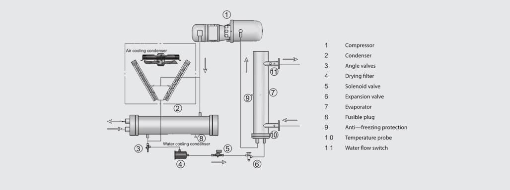 | Evaporator | Type | High performance female screw shell and tube | ||||||||