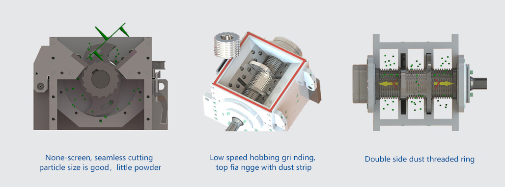 Using tooth knife, claw knife design coarse crushing and fine grinding at the same time, can be mixed with the new material immediately.
