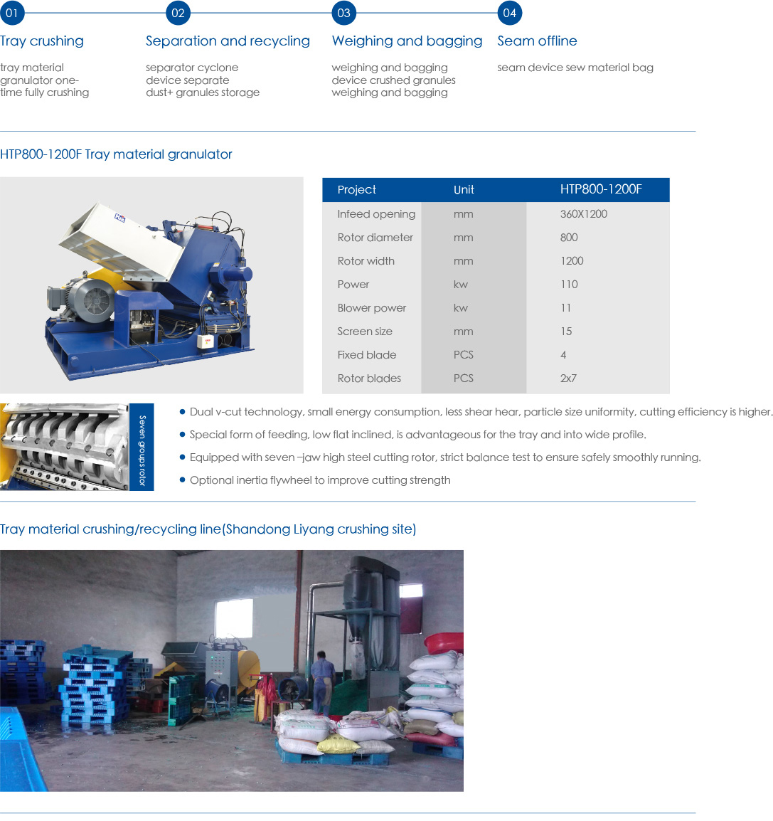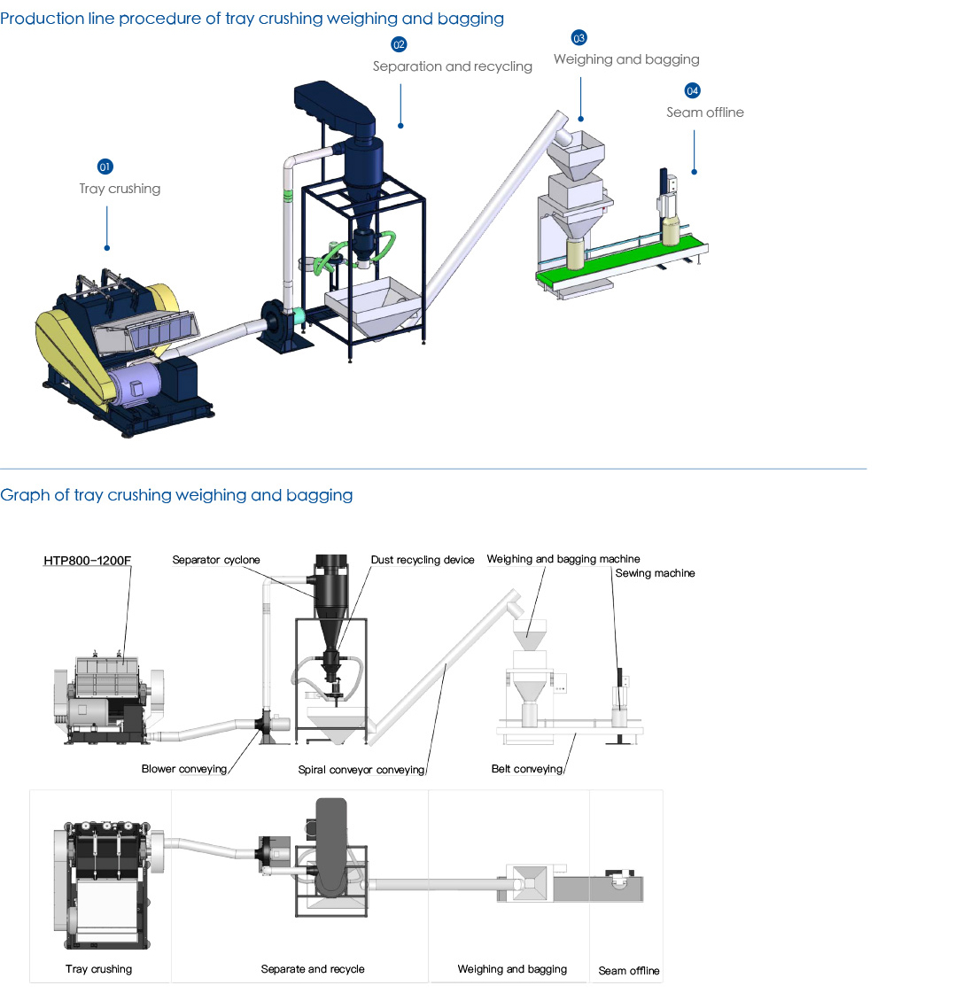Production line of tray crushing weighing and bagging